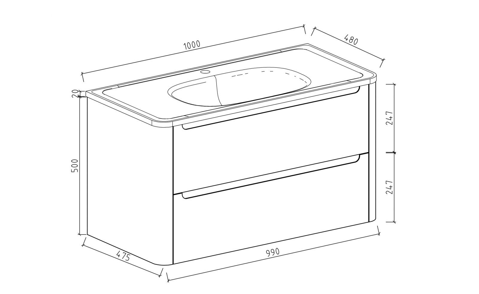 - 2 tiroirs spacieux avec fermeture amortie