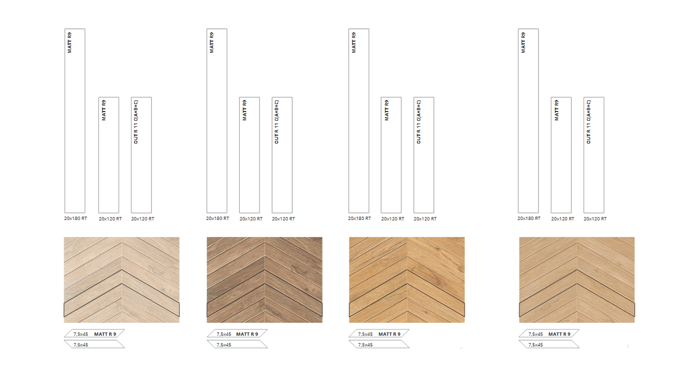 Lames chevron 7,5 x 45 cm (Rectifié • MATT R9 • épaisseur : 9mm)