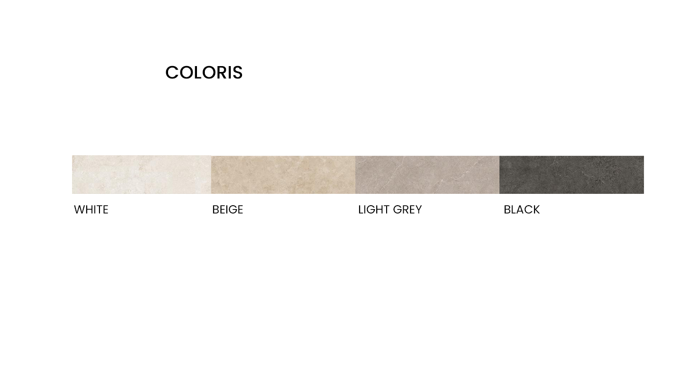 COLORIS : WHITE • BEIGE • LIGHT GREY • BLACK