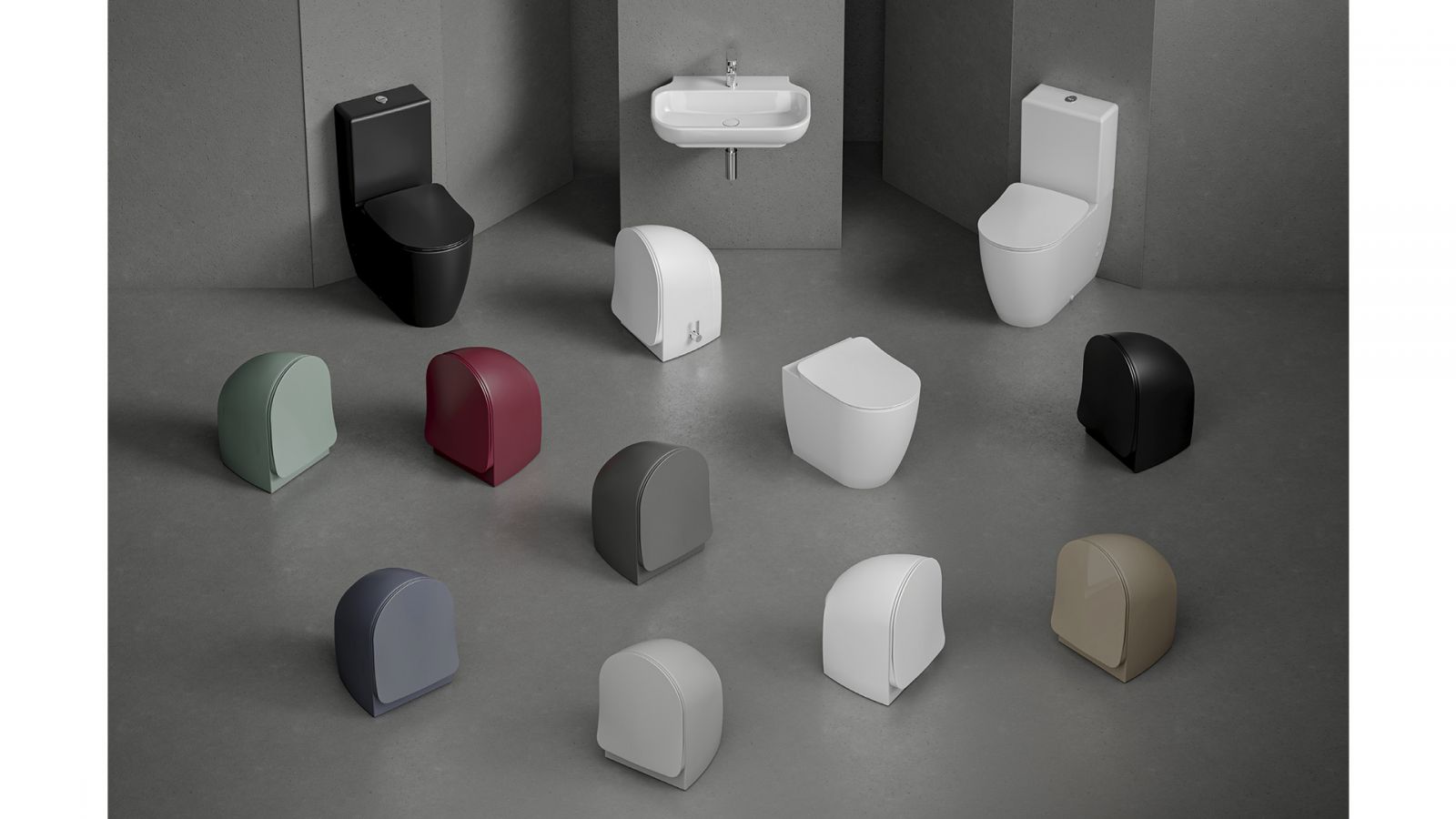 Le pack sanitaires Élégance free avec est disponible en stock chez Cerazur dans de nombreux coloris. Des couleurs basiques comme le blanc mat et noir. Puis plus originales avec du gris, vert, bleu et rouge mate...