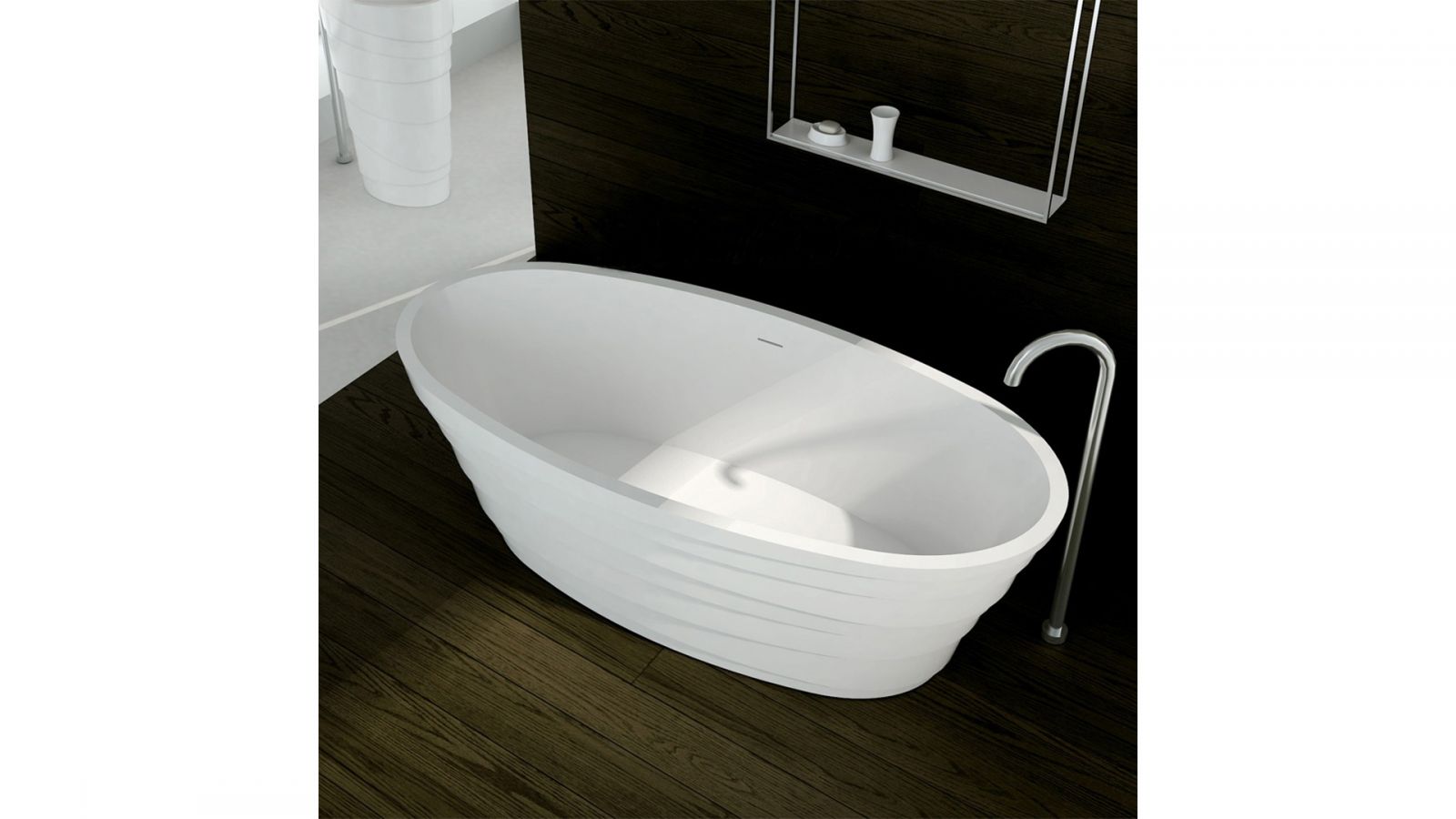 Découvrez la baignoire Balzan. Son style italien et son design exclusif lui confèrent certains charmes. C'est une série de baignoires îlot solide avec une épaisseur de surface de 18 mm et une finition blanc mat.