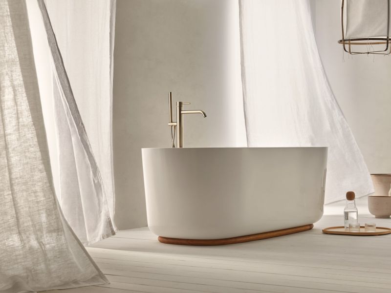 La baignoire Calma est une baignoire acrylique en îlot avec bonde click-clack et débordement intégré. Vous pouvez la personnaliser, en choisissant la couleur de votre choix. Mais aussi, en y ajoutant les accessoires que vous souhaitez, un plateau rectangulaire ou rond, en bois, sur le côté ou le milieu, de nombreuses possibilités vous sont accessibles.