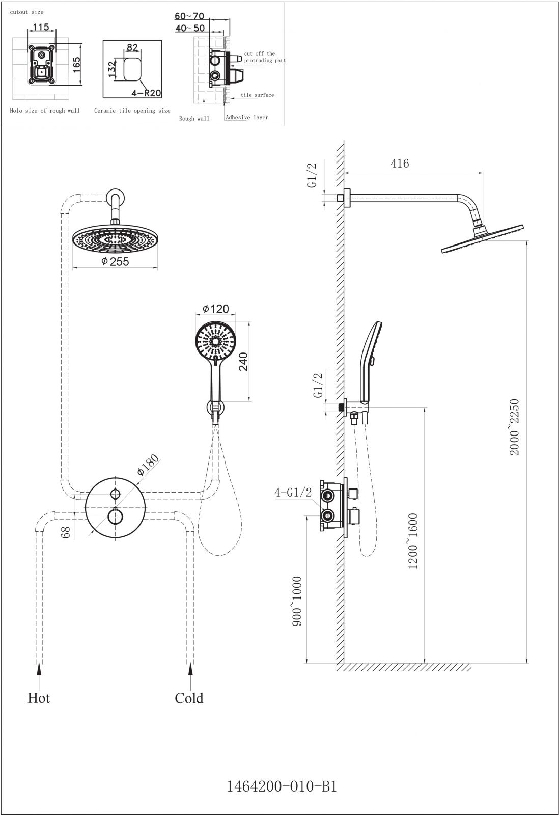 • Douche supérieure